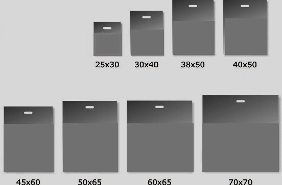 Существует много видов полиэтиленовых пакетов: пакет «майка», орловская сумка, пакет с прорубной ручкой, пакет фасовочный, пакет с петлевой ручкой и т.д.